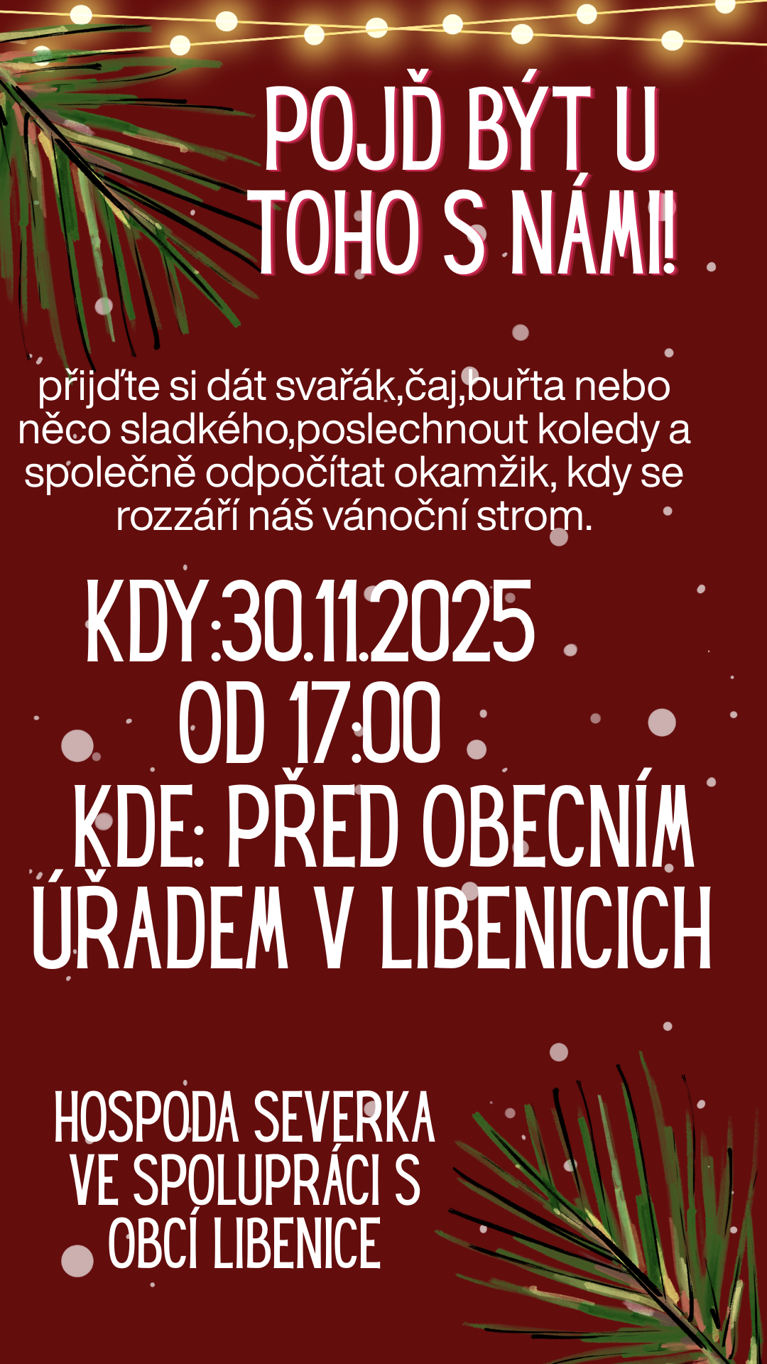 30.11.2025 se v Libenicích konalo rozsvěcení Vánočního stromu. Po krátkém a děkovném projevu starosty Lubomíra Marcina se strom rozsvítil, následovalo pásmo Vánočních písní v podání dětí, které vedla Klára Peroutková. Byla možnost občerstvení svařákem nebo punčem i čajem. Na ohništi se opékaly i vuřty, hrála reprodukovaná hudba. Všem organizátorům, kteří se jakkoli podíleli na přípravě, patří nesmírný dík. Kliknutím na obrázek si můžete prohlédnout několik fotografií.